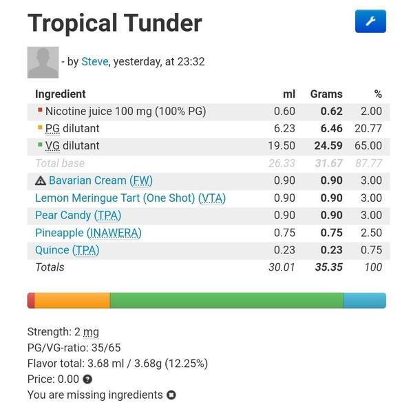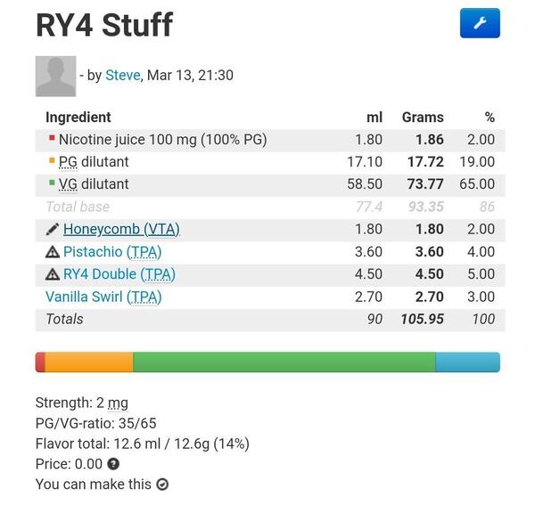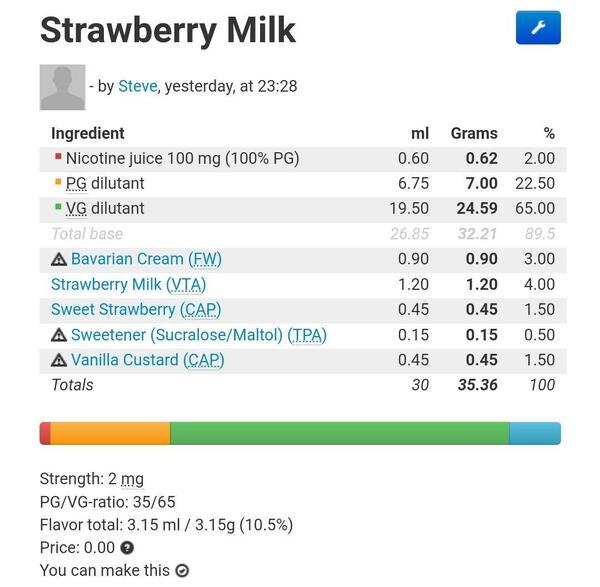 Nog eentje delen. Dit is voor de liefhebber van mierzoete liquids wel een goeie denk ik. Vraag me af of je dit de hele dag wilt/kan dampen zonder misselijk te worden, maar daar gaan we morgen wel achter komen dan 😉 Met populaire aromas, dus wellicht dat je het in huis hebt..