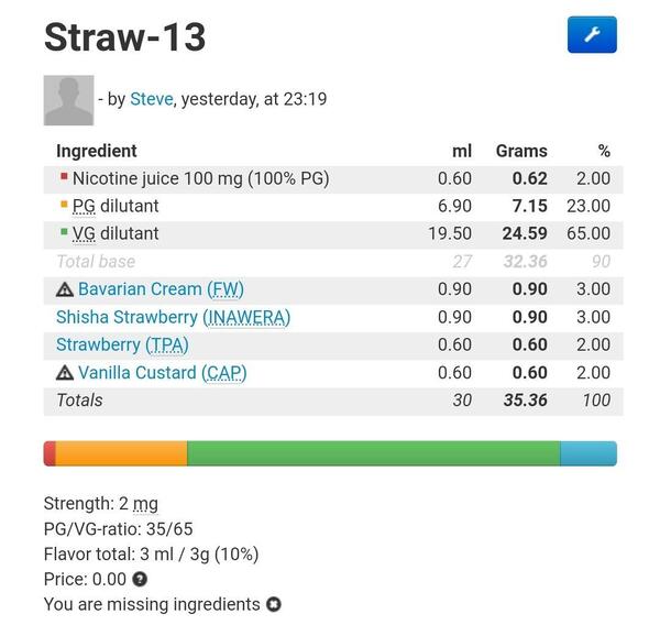 En je kan een smaak oppompen door een ander aroma die als een versterker werkt te gebruiken. Die zijn helaas wel lastig te vinden soms. Diyordie heeft er wel wat filmpjes over. Toevallig pakte deze bij mij wel goed uit. Klein beetje pear (flavorah) om je aardbei een schop te geven. Lekker hoor!